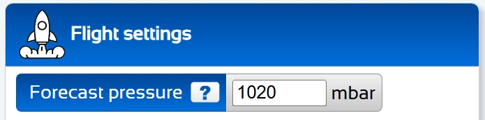 You can set your forecast pressure and the static temperature via the Altimeter Cloud settings, or directly on the device using its WiFi server. On the Altimeter Cloud, you will find the setting under the Flight settings tab on your device's settings page.