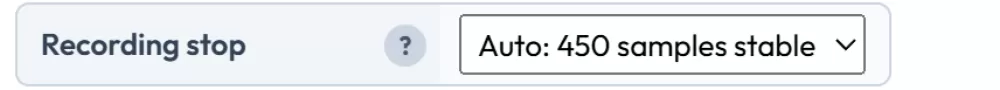 The recording stop determines when to end a flight recording. The default setting of auto (450 samples stable) will be perfect for the vast majority of flights.