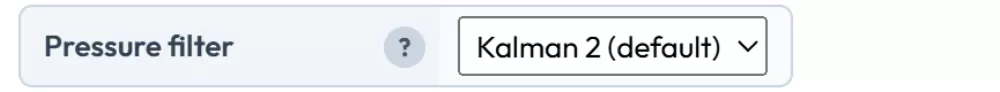 The pressure filter is a Kalman filter that runs on the processor rather than on the sensor. You can choose from 4 settings: OFF or three levels of filtering. This is an advanced filter that estimates the real pressure based on current and historical samples.