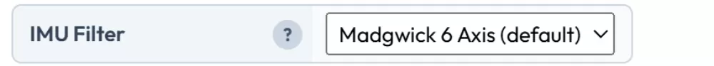 The IMU filter fuses together the 6-axis data from the gyroscope and accelerometer to calculate angles such as pitch, roll, yaw and the tilt angle from vertical. The Madgwick filter uses slightly more processing power but is more accurate than the Mahony filter.