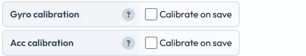 For the most accurate data we recommend calibrating your sensors. Tick the calibration checkbox and save — the calibration will run the next time the device enters flight mode.