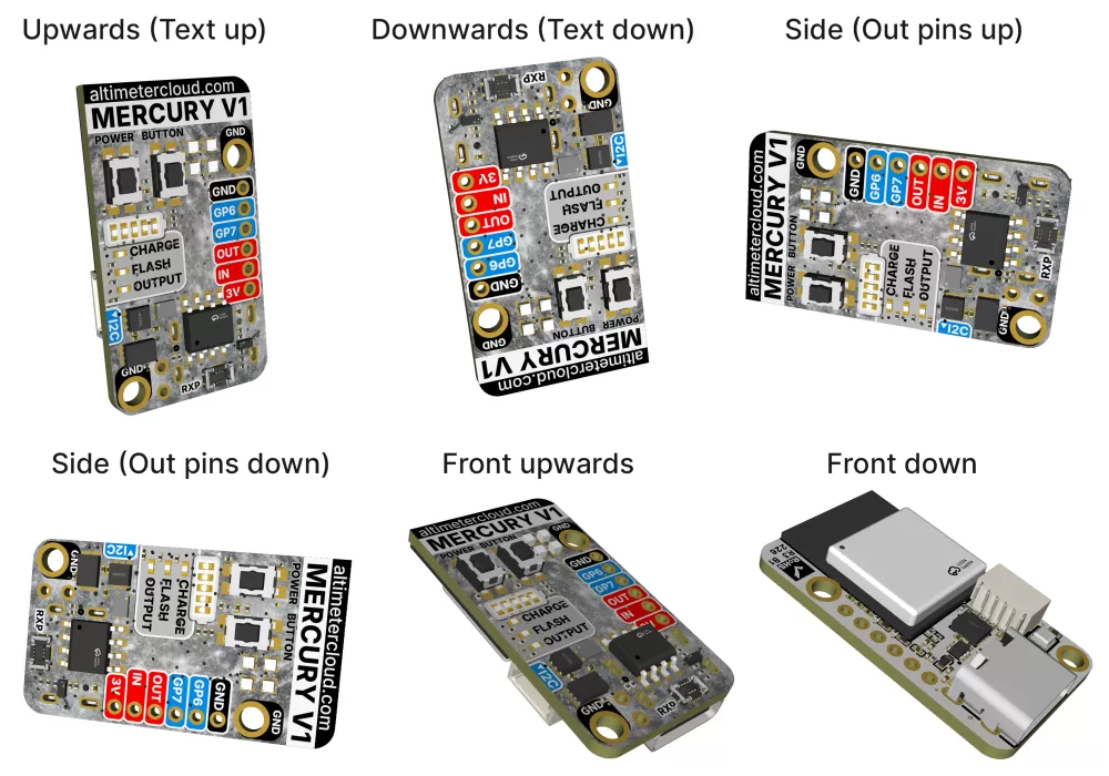 The orientation setting tells the altimeter which way up you plan to install it. While it can work this out itself, this setting ensures the IMU filter receives the correct axis data in the correct order for accurate angle calculations. The default is upright with the USB port pointing downwards.